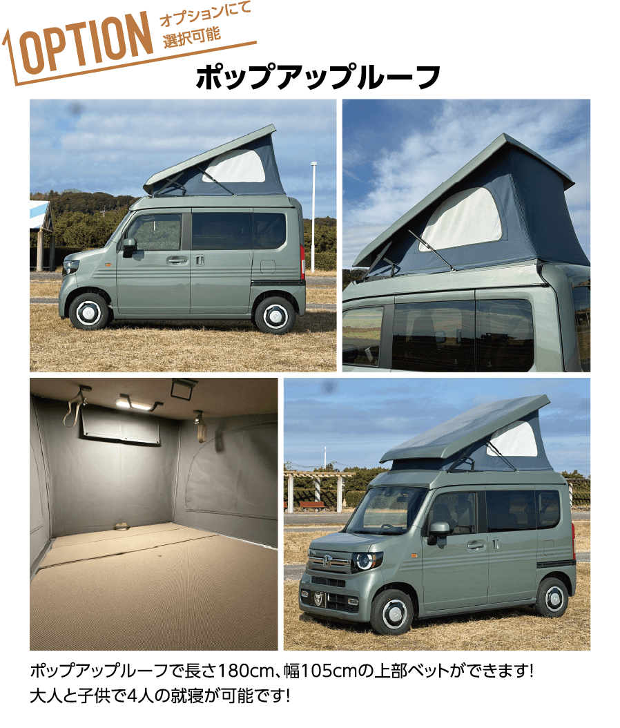 ベットは助手席側210cm!運転席側も180cmと大きなベットになります!